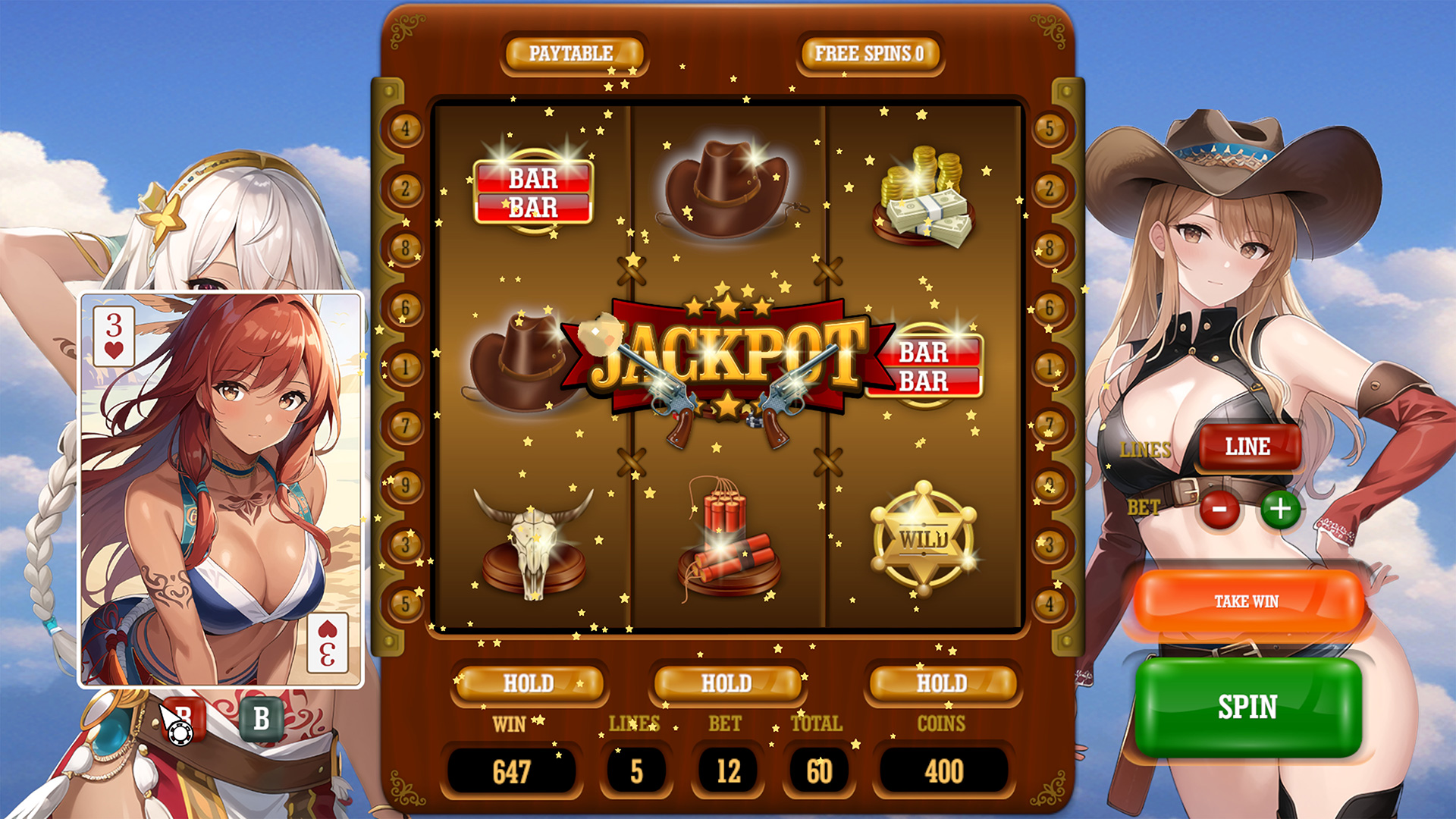 Experience the real thrill of Las Vegas! Enjoy all the fun of a Western slot machine in your hand. Place your bet, spin, and win big prizes!